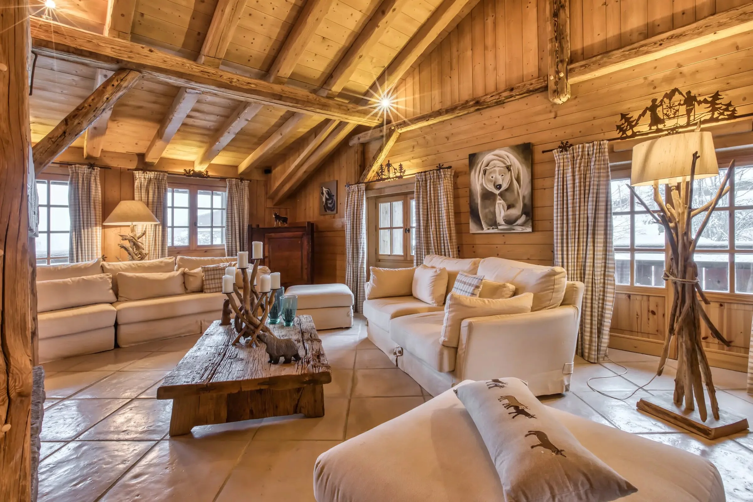 La partie habitable du Chalet Shâlâ est repartie sur deux étages, aménagés en trois salons, une cuisine et une salle à manger. A ceci se rajoutent deux grandes terrasses avec un salon extérieur ainsi qu’une table à manger.