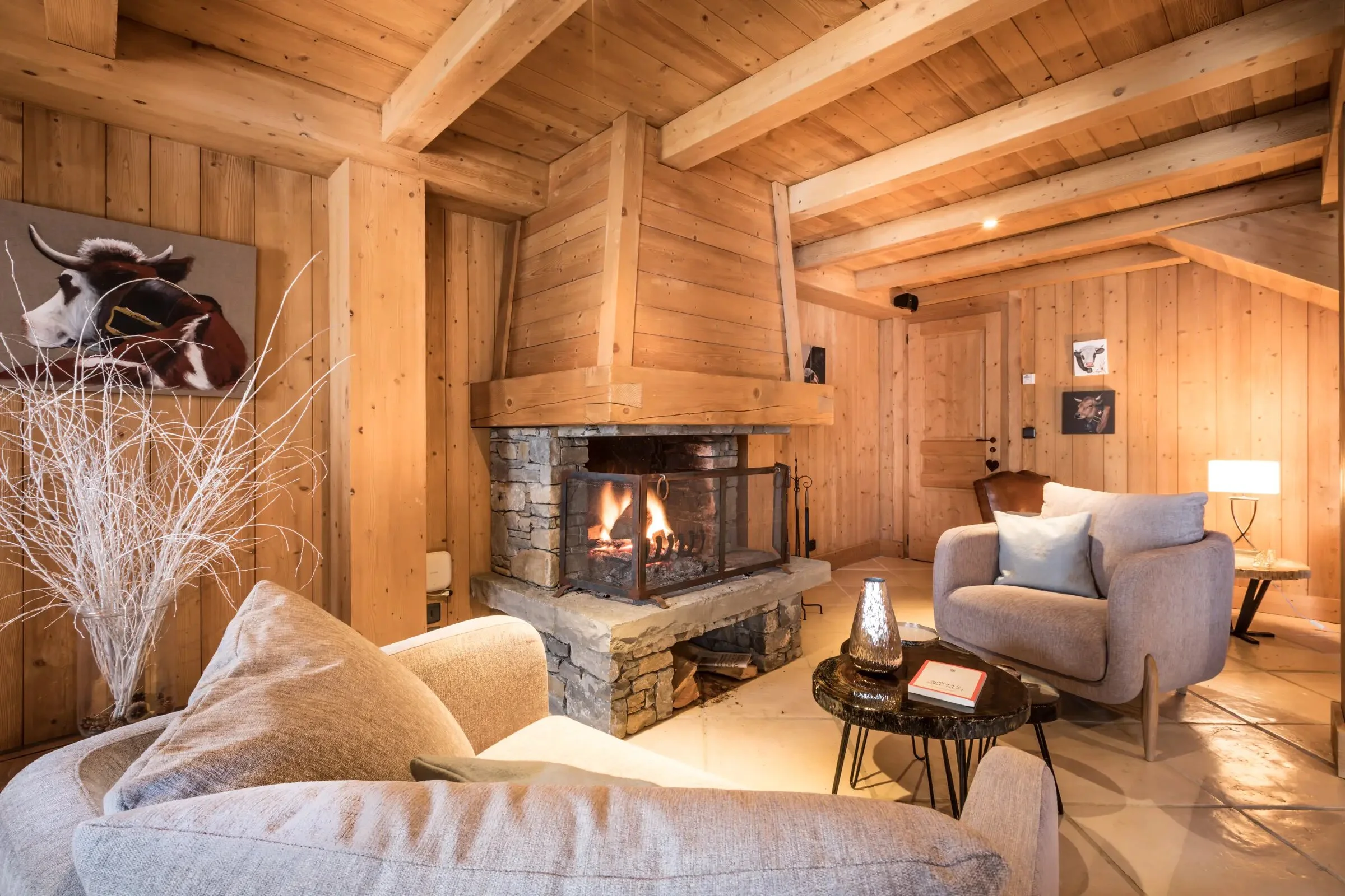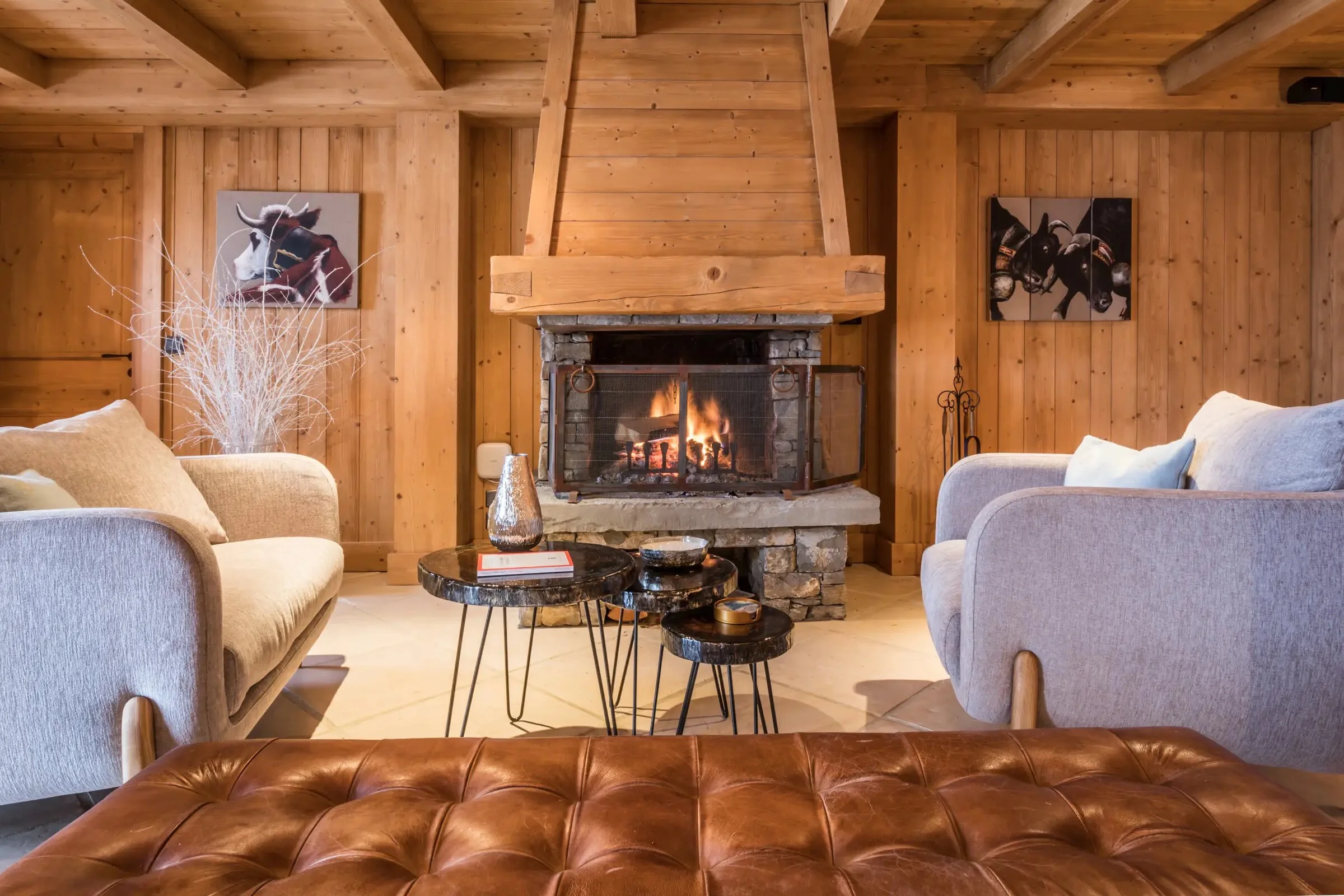 Equipé d’une large cheminée en pierre sèche, ce salon est situé au premier étage du chalet avec une vue panoramique du Mont-Blanc, de L’Aiguille du Midi et du Mont-Rose. Idéal pour un moment de partage à plusieurs ou pour un moment de découverte des refuges du Mont Blanc a l’aide du télescope.